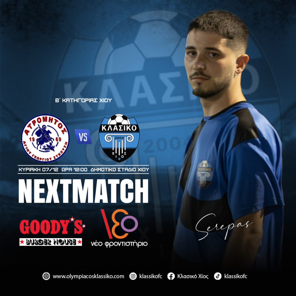 Κόντρα στον πρωτοπόρο Ατρόμητο Αγίου Γεωργίου Συκούση στο Δημοτικό Στάδιο Χίου για την B’ ΚΑΤΗΓΟΡΙΑ την Κυριακή 07/12 στις