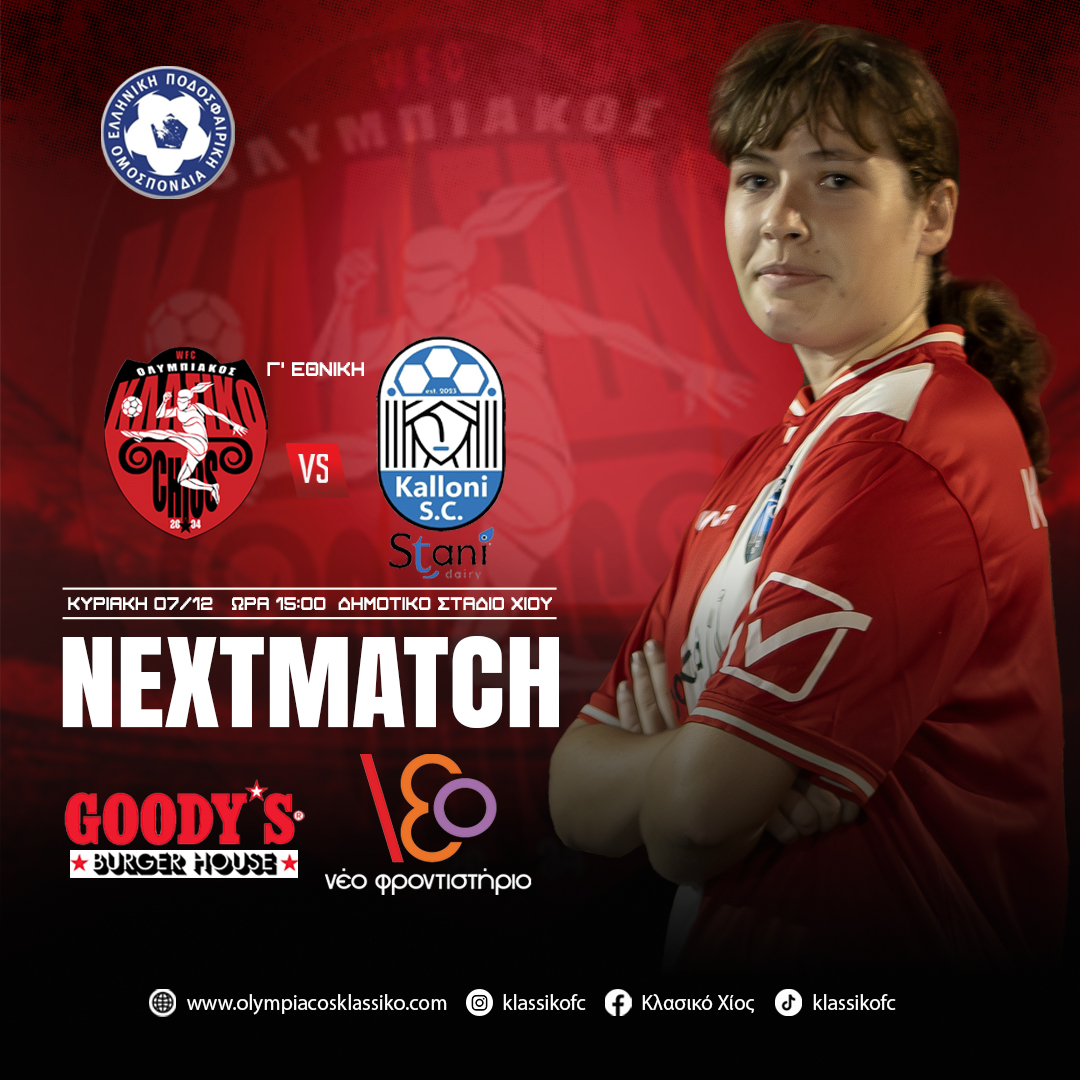 ΑΝΑΚΟΙΝΩΣΗ ΟΛΥΜΠΙΑΚΟΥ ΚΛΑΣΙΚΟ ΧΙΟΥ Όπως το φίλαθλο κοινό γνωρίζει , είμαστε ένα νεοσύστατο σωματείου γυναικείου ποδοσφαίρου στο οποίο συμμετέχουν και αγωνίζονται κατα το 80% κορίτσια κάτω των 15 ετών και μετέχουμε στο πρωτάθλημα Γ εθνικής κατηγορίας.Ουδέποτε αναγκαστήκαμε στο παρελθόν να βγάλουμε ανακοίνωση αλλά δυστυχώς η συμπεριφορά ενός μεμονωμένου παράγοντα ο οποίος αποβλήθηκε στο 25ο λεπτό …